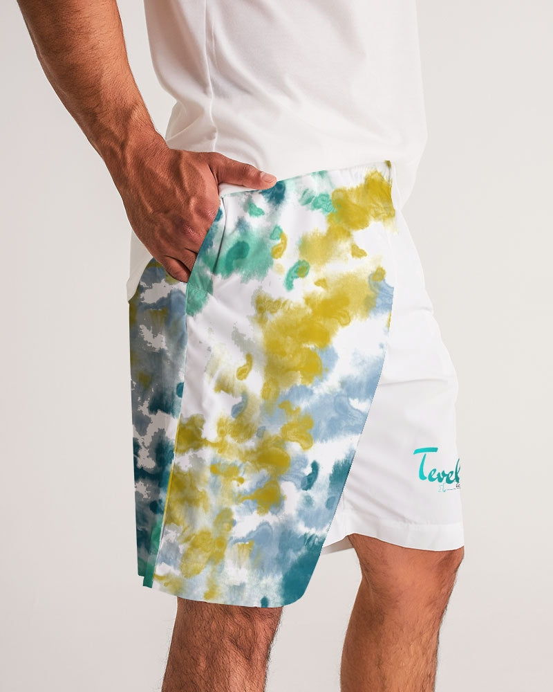 About The ArtMulti-color Design Multi-color blue, green, white, and yellow patterned design. Product DetailsOur Men's Jogger Shorts, made with an easy pull-on style with oversized, roomy feel are great for everyday wear. With dual pockets and elastic waistband, they're a throw on and go favorite.
